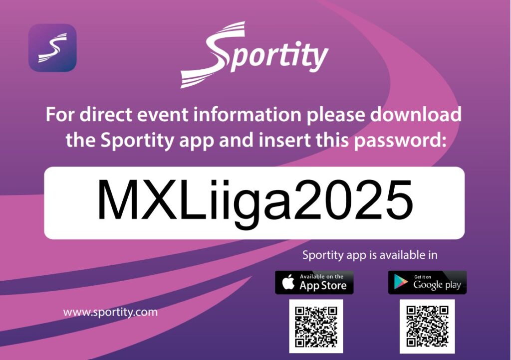 Lataa sovellus App Storesta tai Google Play -kaupasta. Salasana MXLiiga2025!